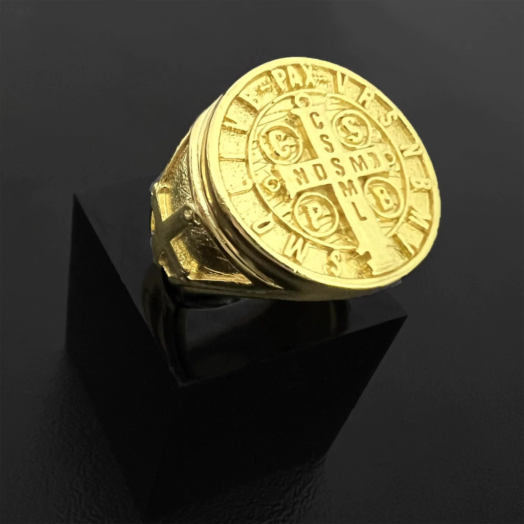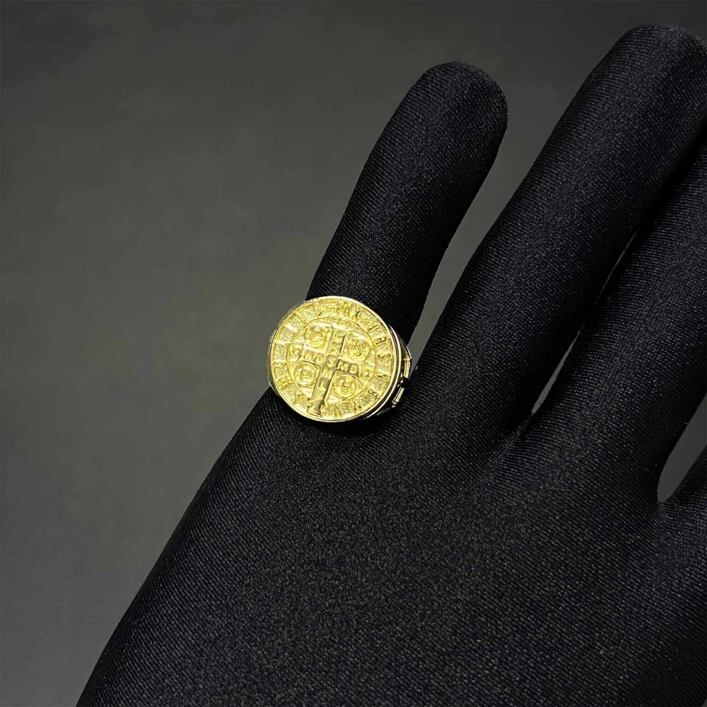 Anel São Bento Cruz Lateral (15,3g) (Banho Ouro 24k): Fé e Estilo com Sofisticação